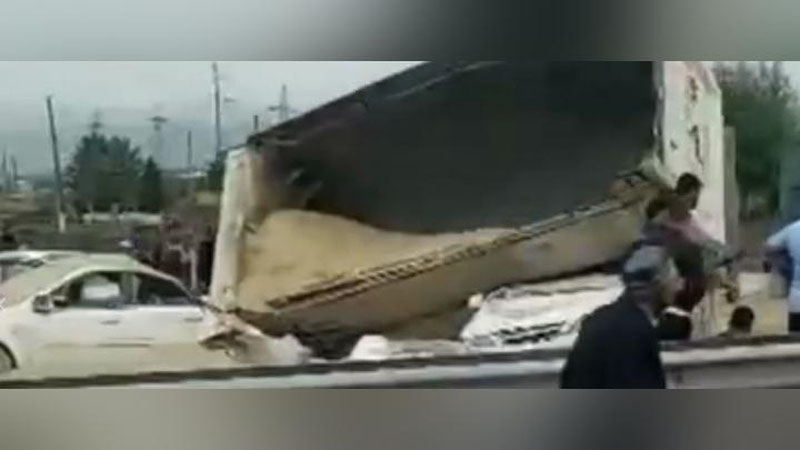 На 184 км трассы А-373, проходящей через город Ангрен, грузовик MAN, следовавший по маршруту «Наманган-Ташкент», не справился с управлением, опрокинулся перед пересечением с железной дорогой, столкнувшись с двумя "Ласетти", двумя "Нексиями-3", "Кобальтом", "Джентрой", и "Матизом". В результате столкновения загорелся один из автомобилей Lacetti, сообщает пресс-служба МЧС.