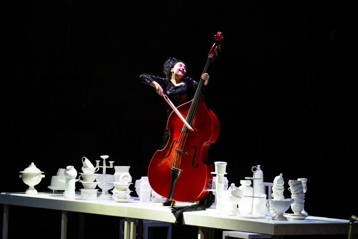 Массовка-социум в выразительных костюмах, укрупненная своими тенями на обнаженной стене арьерсцены, мечется. Но не мучительно, а расчетливо. Этакий андроид-флешмоб. А сверху еще и холодная авторская «ламинация» из видео и постоянно видоизменяемых декораций. Как будто попал на киносеанс знакомой истории. Той самой страшной истории - про превращение человека в насекомое. Только теперь в 2D. Без одной из плоскостей, которая и делает мир - миром, а не картинкой на экране айфона. Только теперь в чб. Без яркой и многоцветной его палитры, а только удобные и контрастно-официальные цвета. Только тщательно отобранные и отточенные детали, эмоции и движения.