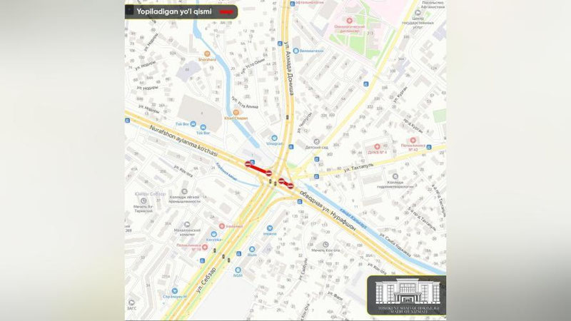 Из-за дорожно-ремонтных работ с 15 по 25 ноября одна сторона дороги на улице Нурафшон от пересечения с улицей Себзар будет частично закрыта.