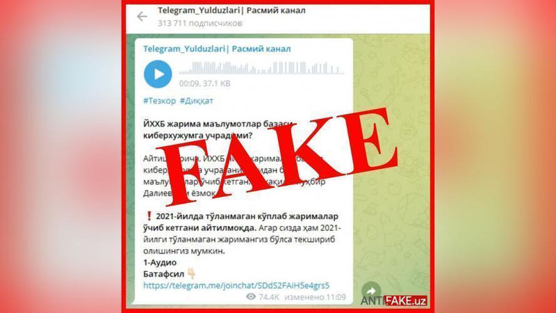 В социальных сетях и мессенджере Telegram распространяется аудиозапись о том, что якобы база данных о штрафах за нарушение правил дорожного движения в стране была удалена в результате кибератаки.