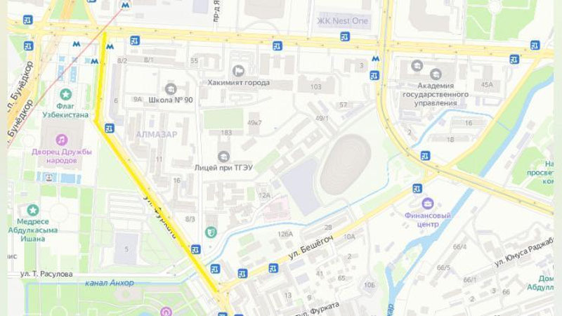 Сегодня в Ташкенте перекроют улицу возле Дворца Дружбы народов в связи с празднованием Дня принятия государственного флага.