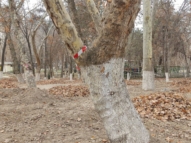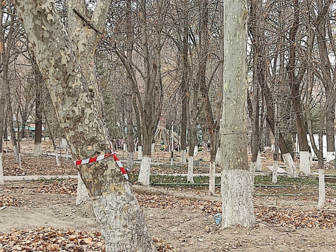 На днях в социальных сетях, в частности на Фейсбуке появился очередной тревожный пост – жители, прогуливающиеся в парке им. Гафура Гуляма, увидели, что ряд деревьев в парке обвязаны красной лентой и сразу же забеспокоились – деревья предназначены под спил (!).