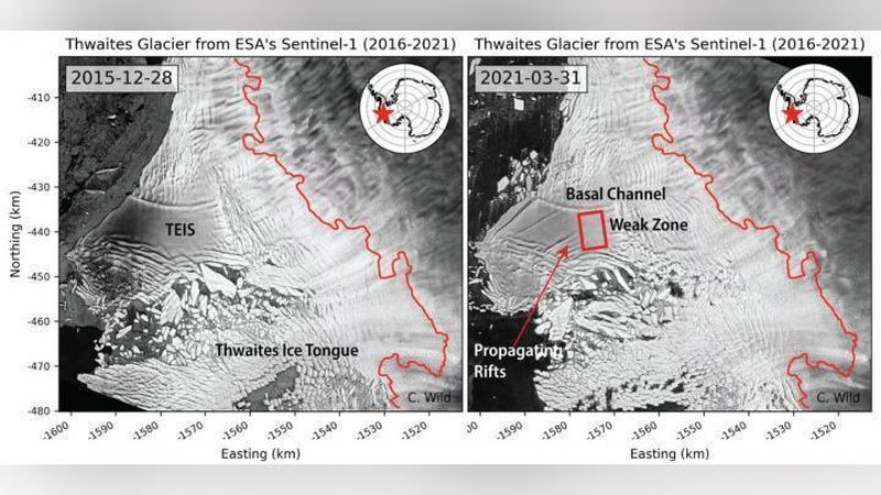 Учёные изучили ту часть ледника, которая частично опирается на дно. Оказалось, что одну треть от него подпирает другой ледник — Восточный шельфовый, разрушение которого грозит сползанием сухопутной части в море. Это увеличит вклад в повышение уровня моря на 25%.