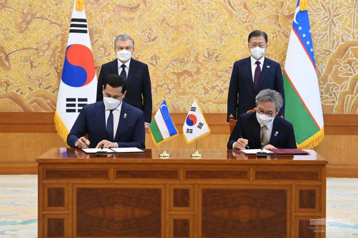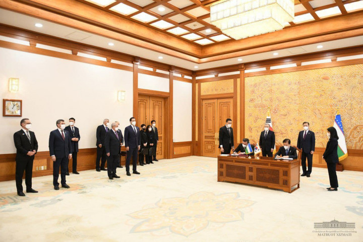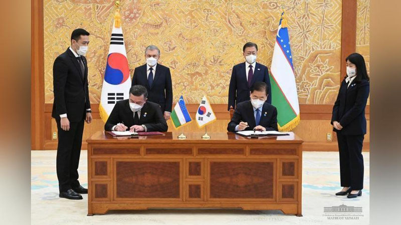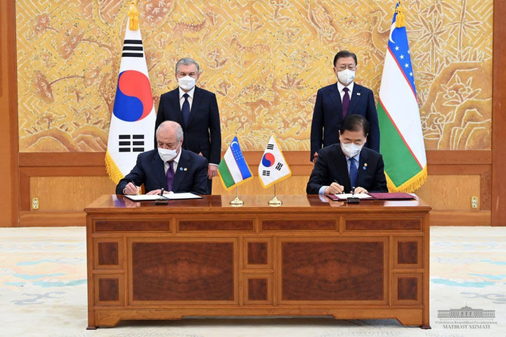 После плодотворных переговоров глав Узбекистана и Республики Корея в Сеуле состоялась церемония подписания двусторонних документов.