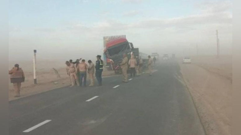 Согласно сообщению, в результате пыльной бури столкнулись три грузовика, двигавшиеся в одном направлении. В них врезались «Тико» и две машины «Нексия», двигавшиеся по встречной полосе.