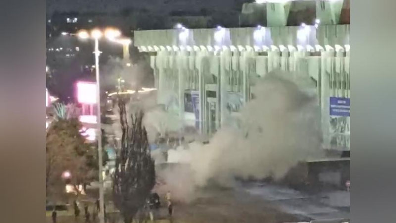 В социальных сетях и мессенджерах распространились видео возгорания в районе площади Дружбы народов, где в эти дни проходит выставка военной техники.