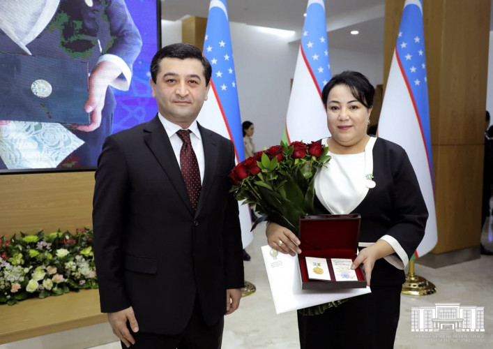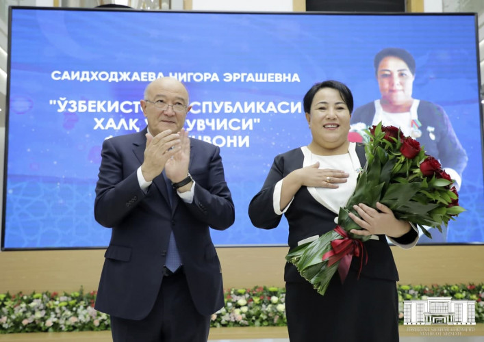 Согласно документу, это звание присвоено за многолетний плодотворный труд в сфере народного образования, весомый вклад в дело воспитания молодого поколения в духе благих идей, уважения национальных и общечеловеческих ценностей, любви и преданности к Родине и народу, воспитание и укрепление в сердцах хозяев нашего будущего - молодежи тяги к науке и знаниям, качеств трудолюбия и великодушия, а также за активное участие в общественной жизни директору школы №300 Сергелийского района Ташкента Саидходжаевой Нигоре Эргашевне.