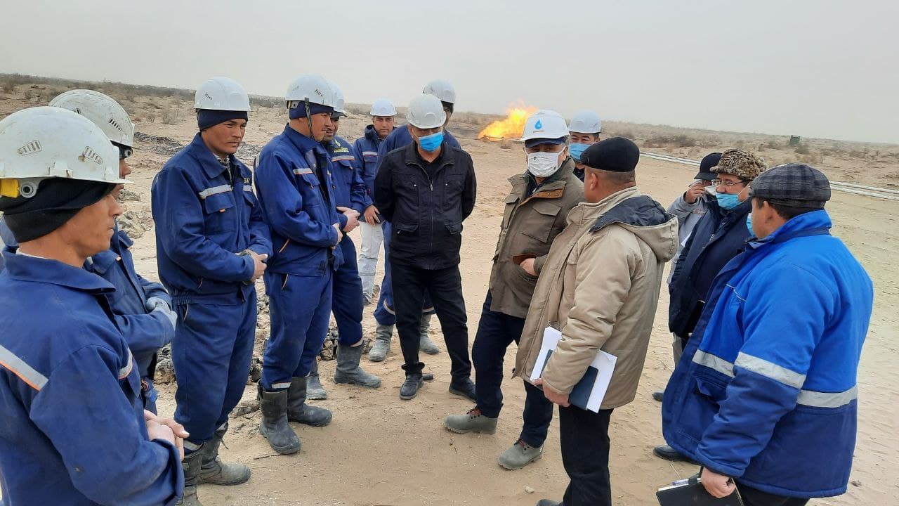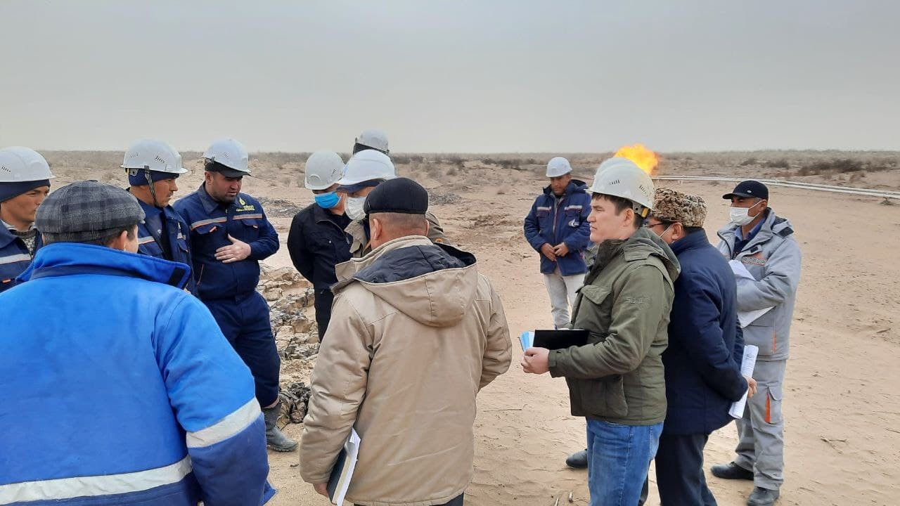Вместе с этим «Рабочая группа» во главе с Председателем Правления ознакомилась с ходом строительства дожимной компрессорной станции для повышения низкого давления газа на Денгизкульском месторождении.