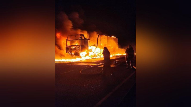 С возгоранием справились пожарные. В результате происшествия пострадавших нет. Транспортное средство и груз сгорели.