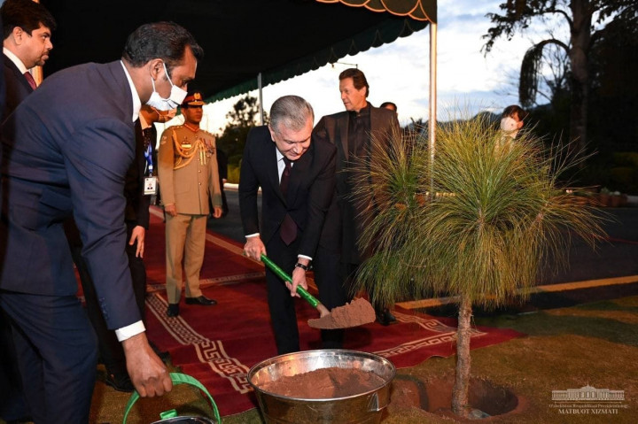 Президент Узбекистана в знак дружбы и согласия между нашими народами посадил дерево в саду резиденции.