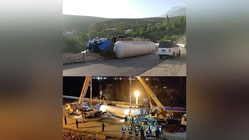 Автоцистерна, наполненная газом пропаном, опрокинулась.