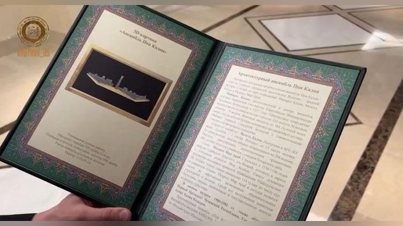 Гости передали главе Чечни Рамзану Кадырову поздравление Президента Узбекистана Шавката Мирзиёева и памятный подарок - 3d-картину "Ансамбль Пои Калон".
