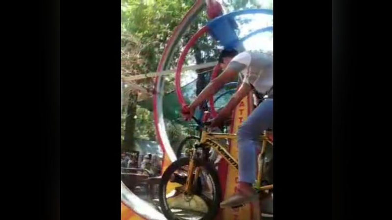 3 июня около 11 часов утра на аттракционе «Велотрек» придавило подростка. На видео можно заметить, что парень помогал раскачивать аттракцион и в какой-то момент он теряет равновесие и падает, после чего его придавливает конструкцией качели.