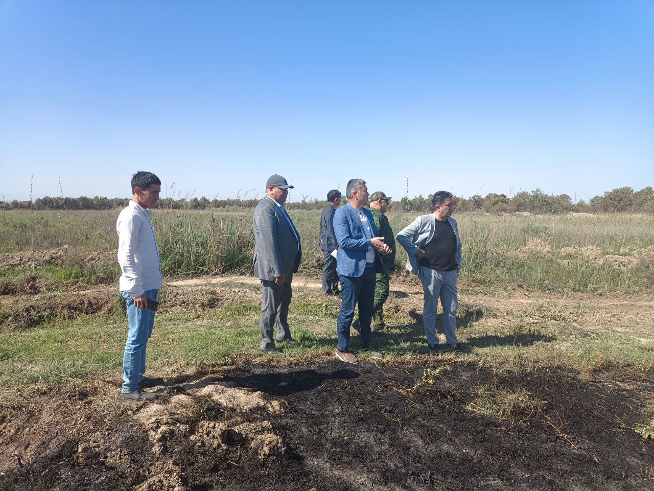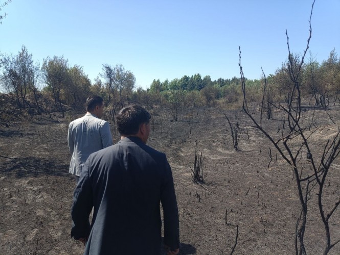 Рабочая группа, состоящая из сотрудников Министерства природных ресурсов, управления министерства в Ферганской области и других уполномоченных организаций изучают причины и последствия пожара в лесном хозяйстве Сырдарьё Дангаринского района.