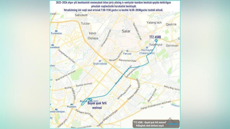 В связи с началом 2023-2024 учебного года с 4 сентября т.г. в Ташкенте временно начнут работу экспресс-маршруты.