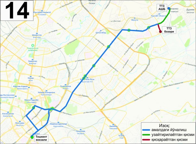 "Перенос маршрута обусловлен скорее беспределом на прилегающей улице и невозможностью ГУВД научить водителей ПДД, и отсутствием места для автобусов на самой конечной, нежели какими-либо другими факторами", - отметили в Телеграм-канале об общественном транспорте Ташкента "Ко дну".