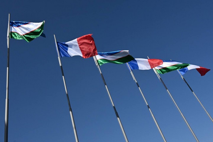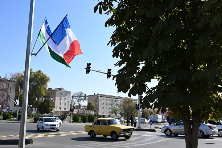 Ранее в сети появились фото украшенного флагами Узбекистана и Франции Самарканда: