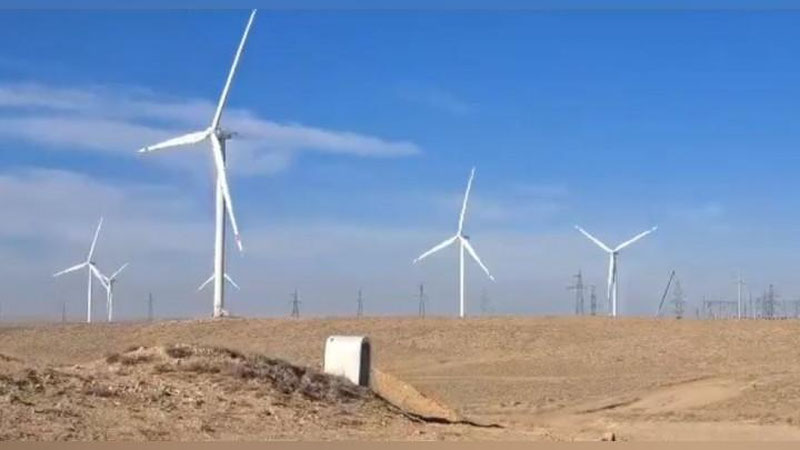В Тамдынском районе Навоийской области проводят испытания первых ветряных турбин ветроэлектростанции.
