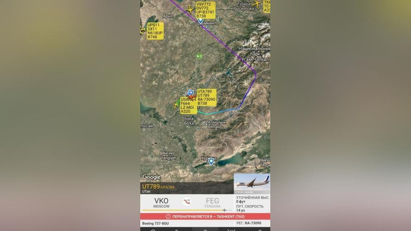 Экипаж рейса Москва-Фергана принял решение об уходе на запасной аэропорт в Ташкент.