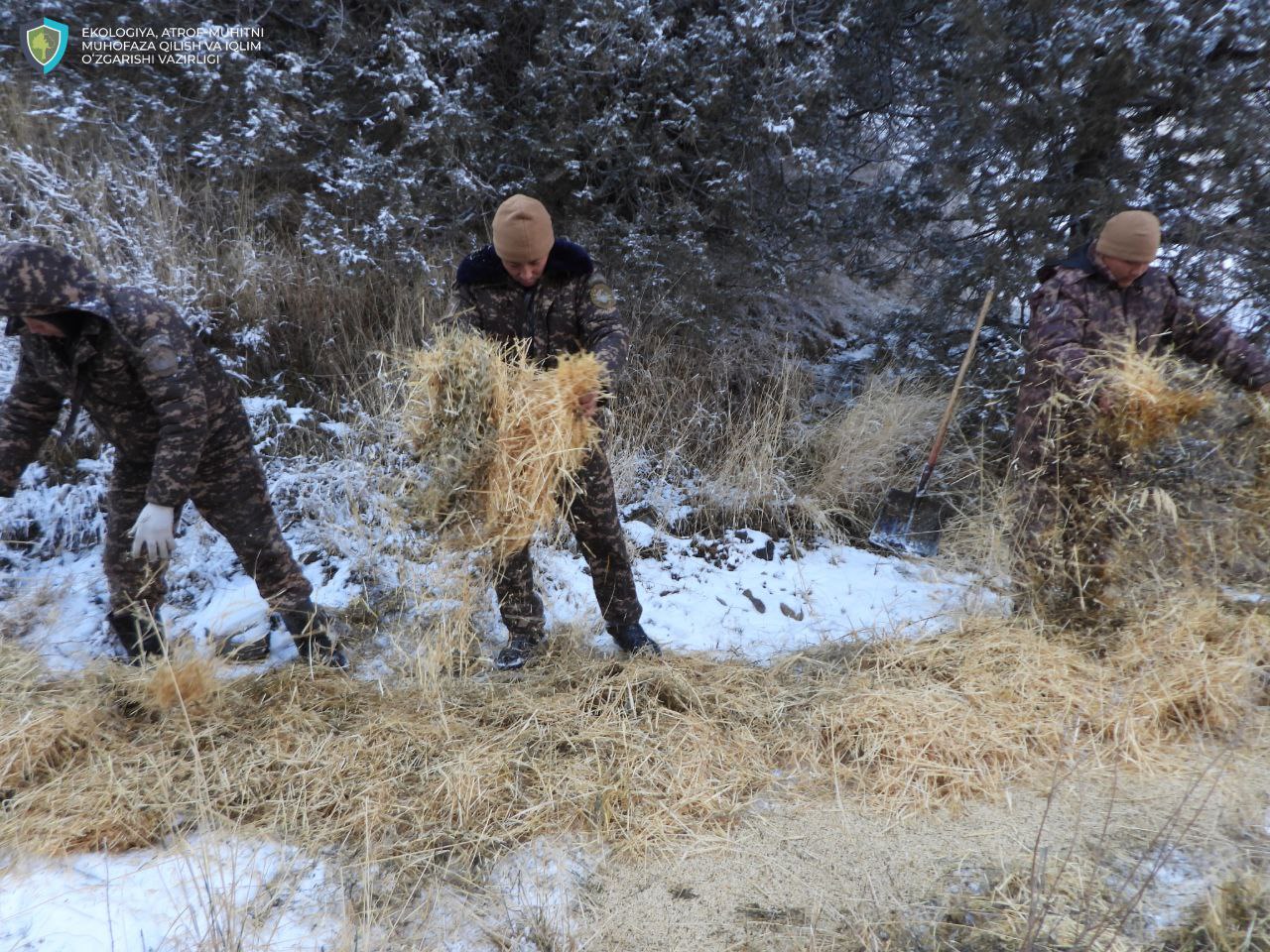 В частности, в пункты питания всех подразделений Сурханского государственного заповедника доставляются отруби и 5 тонн соли, Гиссарского государственного заповедника 1650 тюков грубого корма, национального природного парка «Боботог» 50 тюков сена, национального природного парка «Юкори Тупаланг» 500 тюков корма, соль и отруби.