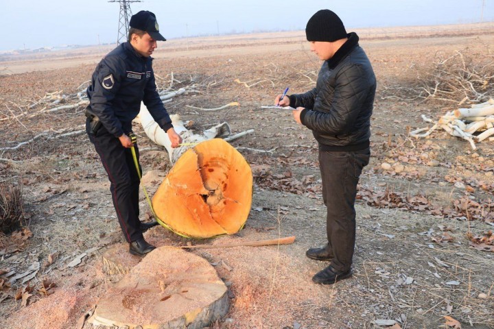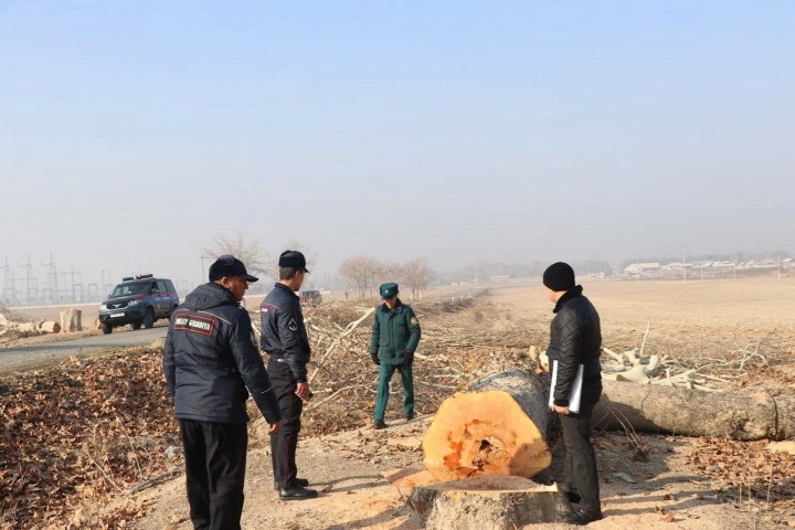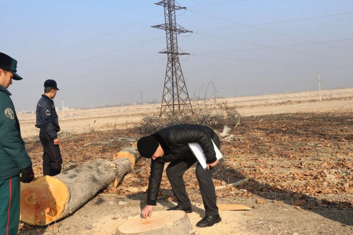 В ходе контрольного рейда, проведенных Андижанской областной прокуратурой, областным управлением Национальной гвардии и областным управлением экологии, на территории Асакинского района в махалле "Янгиабад" обнаружены спиленными шесть огромных чинар.