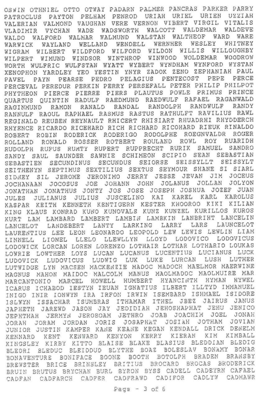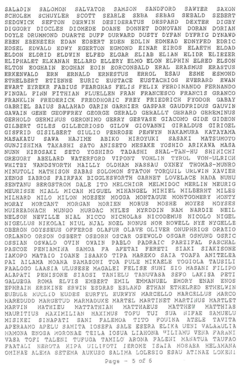 Он собрал своё имя как библиотекарь-куратор: листая книги, выписывал редкие и любимые имена — от Агаменмона до Обивана, от Геракла до Гэндальфа. В итоге имя растянулось на шесть страниц и стало отдельным произведением.
