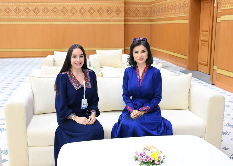 В рамках визита в Авазу (Туркменистан) провела встречу с Вице-президентом Благотворительного фонда по оказанию помощи нуждающимся в опеке детям Огулджахан Атабаевой.
