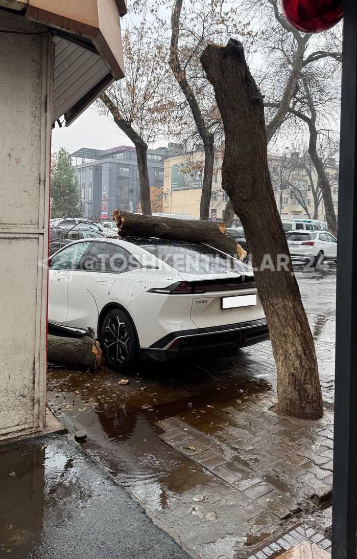 Накануне дерево упало на автомобиль на улице Буюк Ипак йули в Мирзо-Улугбекском районе: