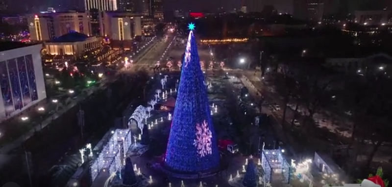 Самая высокая новогодняя ель столицы установлена на площади перед Национальной библиотекой Узбекистана имени Алишера Навои.