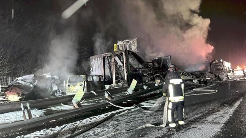 Предварительная причина - гололедица. При столкновении более 10 автомобилей загорелись.