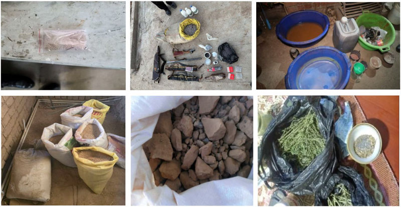 В результате из домов девяти граждан в процессуальном порядке изъяты в качестве вещественных доказательств в общей сложности 17,5 тонны песка и камней, содержащих драгоценные металлы, оборудование для их обработки, 135 граммов золота, 25 граммов наркотического средства «марихуана», одно охотничье оружие и 42 патрона.