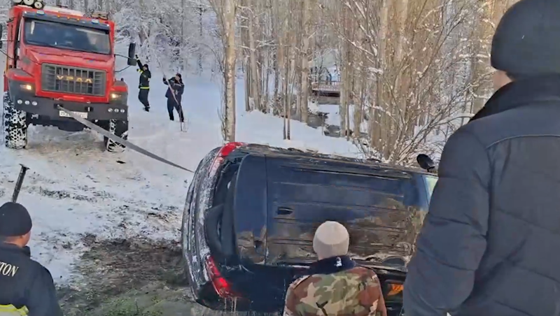 Спасатели из аварийно-спасательных служб прибыли по указанному адресу и, используя специальное оборудование, извлекли автомобиль в безопасное место. В результате инцидента никто не пострадал.