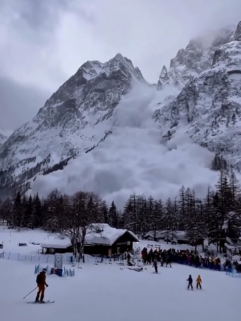 На видео, опубликованном в социальных сетях, видно, как большая группа лыжников ожидает у кресельного подъёмника на противоположной стороне горы. Они смотрят вверх, как поток снега несётся в их сторону. Когда лавина нависает ними, восхищение в последний момент сменилось паникой.