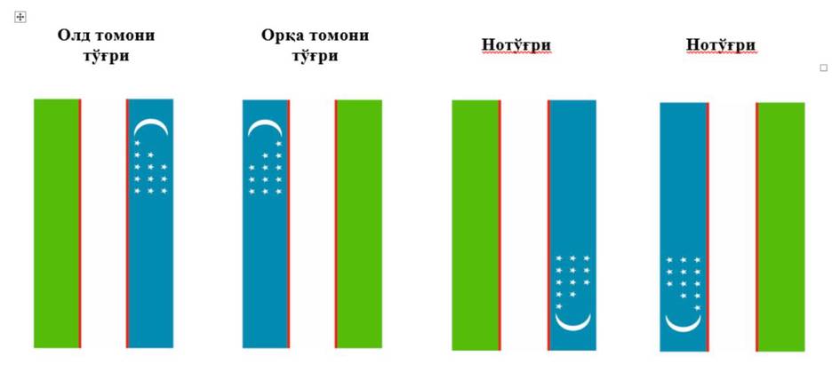 В документе уточняются требования к размещению флага в залах заседаний, органах местной государственной власти и дипломатических представительствах. При демонстрации вместе с другими флагами Государственный флаг Узбекистана должен размещаться в центре либо справа в приоритетном порядке. На массовых мероприятиях он должен находиться в переднем правом фланге строя либо в центре, при этом запрещается нести его после других флагов.
