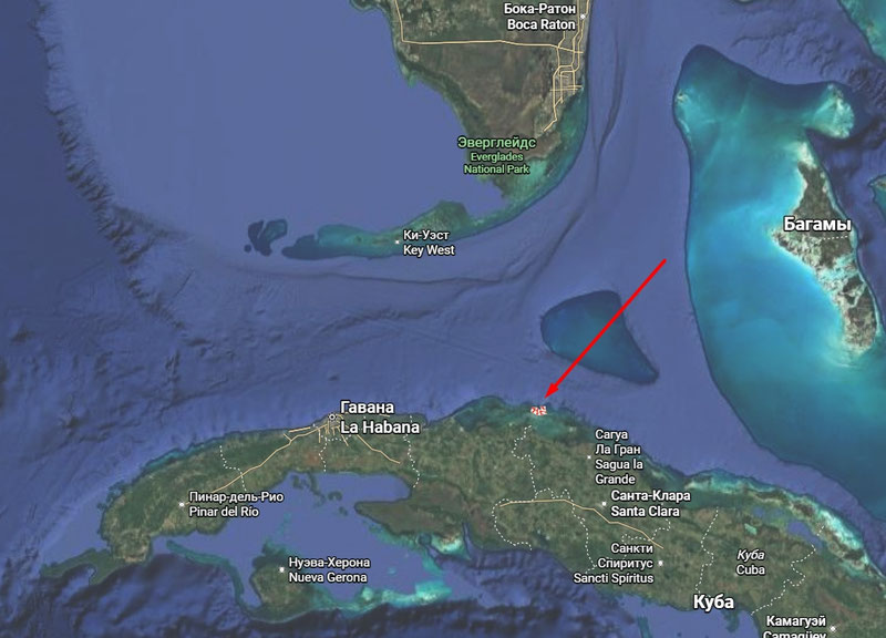 Судно заметили на расстоянии около морской мили от пролива у острова Кайо-Фальконес — примерно в 160 км от побережья американского штата Флорида.