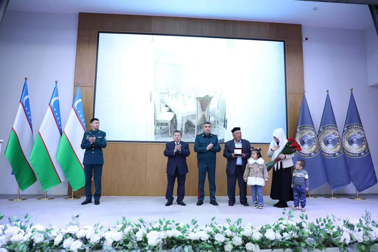 Кроме того, в качестве подарка от Президента семье Эшназаровых была предоставлена трёхкомнатная квартира. Также им будет оказываться социальная поддержка. Трое детей погибшего сотрудника смогут бесплатно выучиться в вузах, а родители получат лечение в клиниках при МВД. В школе №62 Гузарского района Кашкадарьинской области планируется установить памятник сотруднику..webp)