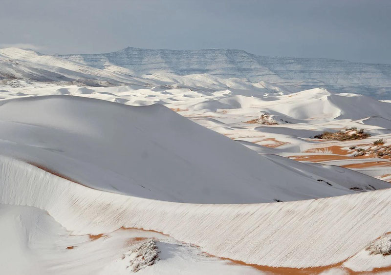 В пустыне Сахаре снова выпал снег - 11 марта в районе Айн-Сефры на севере Алжира оранжевые дюны припорошило белым слоем.