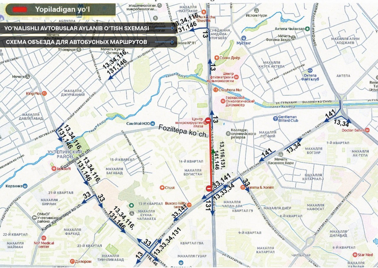 В указанный период движение автобусов и других транспортных средств, маршруты которых проходят через данный участок, будет организовано в соответствии со схемами, указанными на прилагаемых изображениях.
