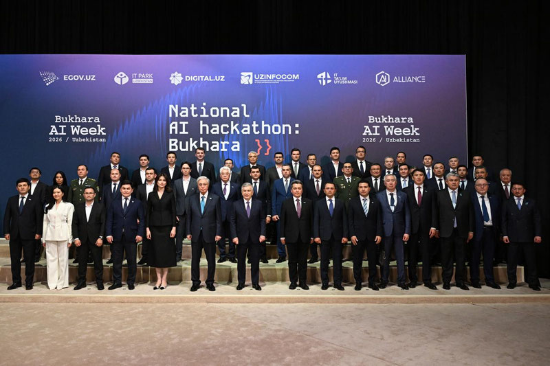Кроме того, лидеры посетили Общенациональный хакатон по искусственному интеллекту — «National AI Hackathon», проходящий в спортивном комплексе Бухары.