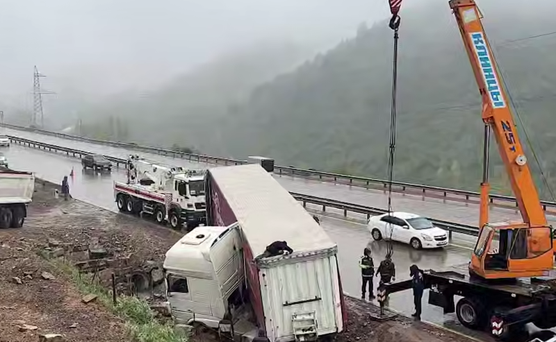 Спасатели МЧС извлекли грузовой автомобиль, съехавший в кювет на перевале «Камчик»