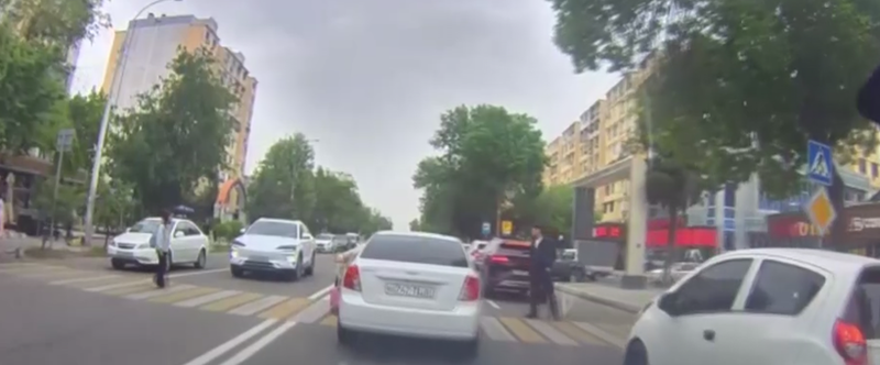 В соцсетях распространилось видео, как в Сергелийском районе столицы нетерпеливый водитель едва не сбивает школьницу с ног на пешеходном переходе.