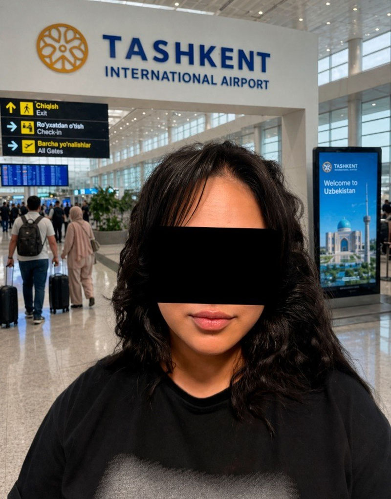 Сообщается, что женщина 2002 г.р., уроженка Бостанлыкского района Ташкентской области, являвшаяся членом преступной группы, занимающейся отправкой девушек в зарубежные страны для сексуальной эксплуатации, обманула 4 девушек и была остановлена в международном аэропорту Ташкента в момент, когда увозила одну из них вместе с собой в Дубай.