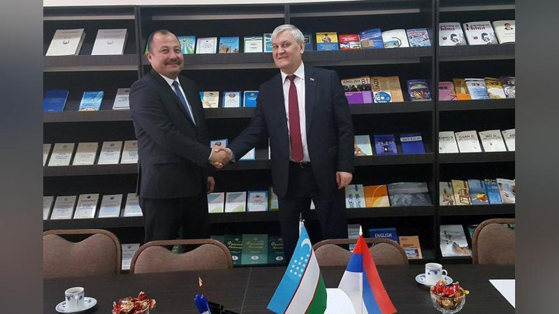 Об этом говорилось на встрече с участием ректора вуза Ганишера Рахимова и руководителя представительства Россотрудничества в Республике Узбекистан Виктора Шулика. Поддержку со стороны руководства вуза получило и предложение об организации мероприятий в области переводоведения с экспертами из России.