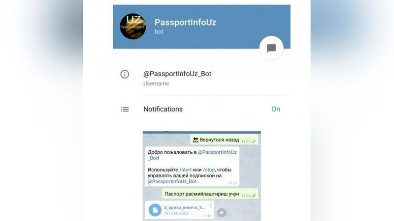 Гражданин для скачивания бланков, используемых в подразделениях Миграции и оформления гражданства, должен зарегистрировать бот @PassportInfoUz в своем аккаунте в мессенджере Telegram.