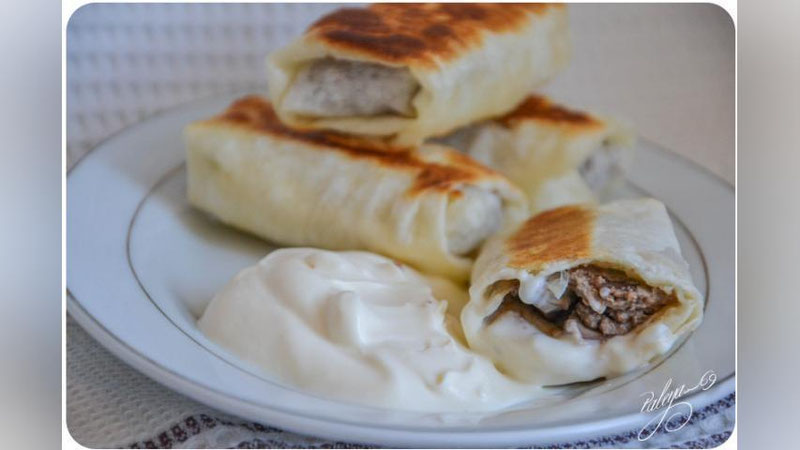Готовые «лавашики» с двух сторон слегка подрумяним на сухой сковороде.Подавать со сметаной и сладким чаем.