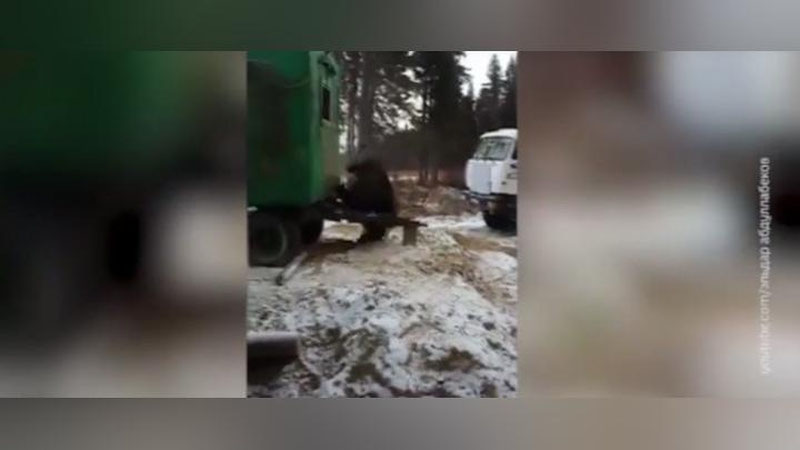 Сначала косолапому вкололи дозу снотворного, а когда оно подействовало, к лапам лесного гостя привязали трос. С помощью КамАЗа мишку вытянули из ловушки. Действовали максимально осторожно, так что животное не поранилось. Вскоре медведь вернулся в естественную среду обитания, сообщает телеканал "Россия 24".