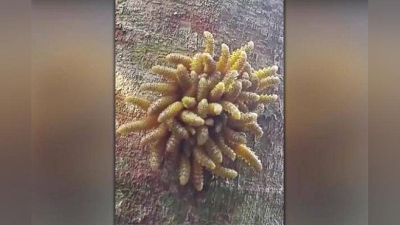 По словам специалистам, на самом деле загадочное существо представляет собой сборище личинок пилильщика. Данный вид обитает в пресноводных водоемах, однако больше всего любит чистые места. Одинокая личинка пилильщика может легко стать добычей голодной птицы или паука, однако вместе они могут обороняться.