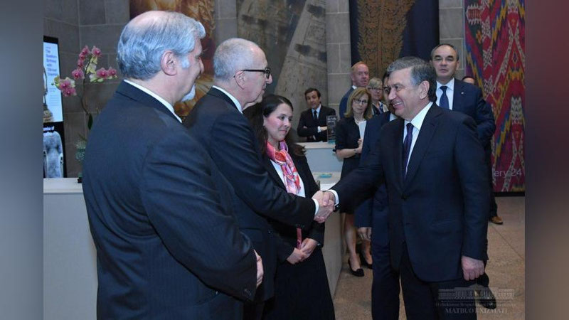 Глава нашего государства в рамках официального визита в США ознакомился с экспозицией узбекского атласа и адраса в Вашингтонской галерее Артура Саклера.