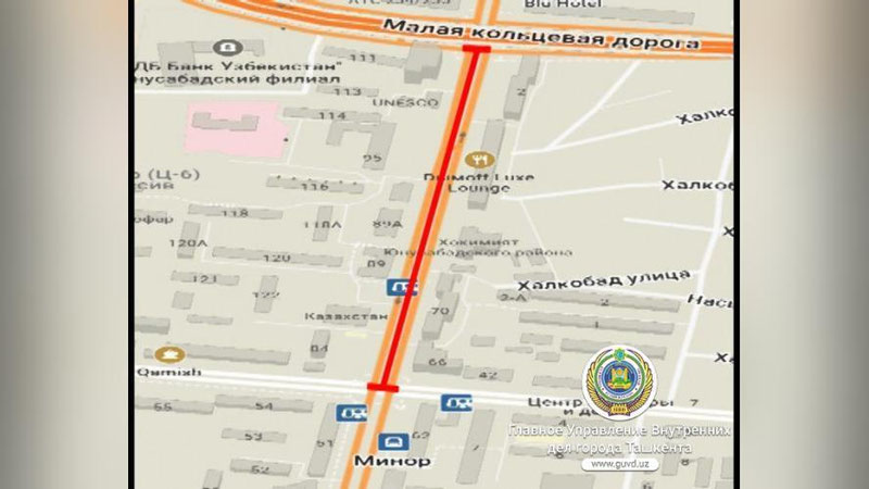 Сегодня, 27 июля, улица А. Темура от ул. Осиё до Малой кольцевой автомобильной дорогой (МКАД) закрывается для движения транспортных средств.