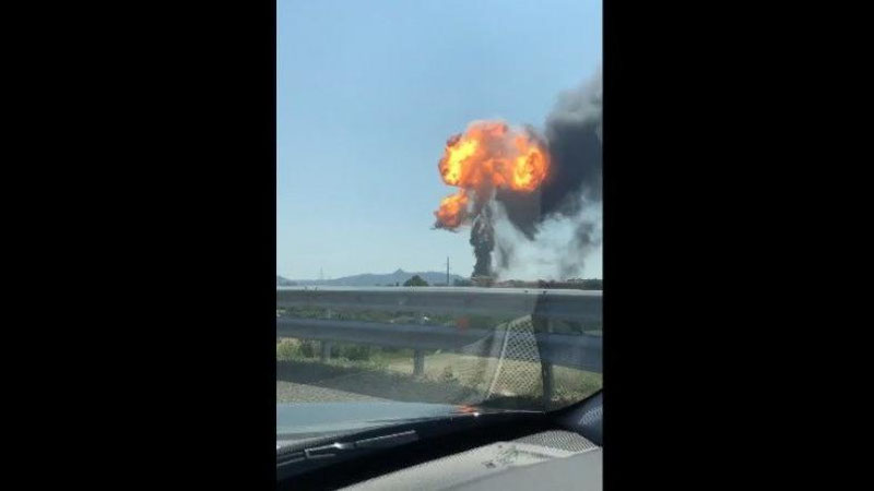 На видео, опубликованных в twitter очевидцами, можно увидеть момент взрыва, сильный пожар и чёрные клубы дыма (в Tas-Ix ).